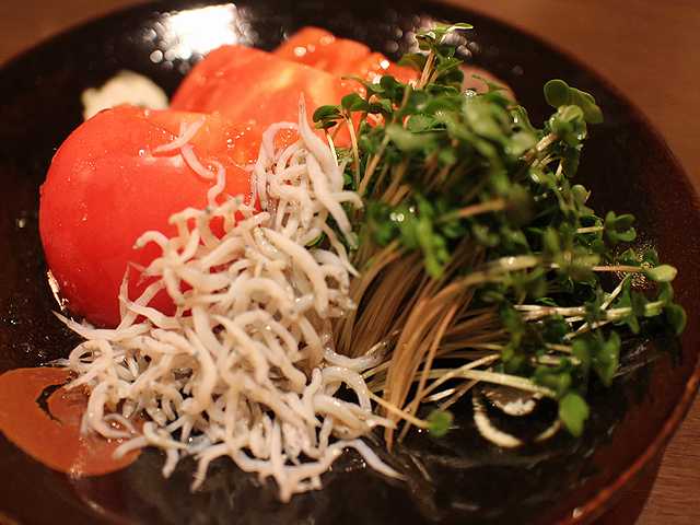 まずサラダ系は2品。「トマト、しらす、スプラウトのサラダ(720円)」。トマトとスプラウトの瑞々しさが素晴らしかったです。