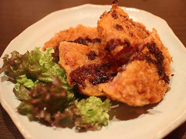 「厚切り ハムカツ(680円)」もサクサク、いい塩梅で揚げられていました・