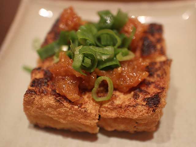 「厚揚げ にんにく味噌焼き(580円)」。厚揚げの焼き方もうまいですし、にんにく味噌との相性も良かったですね。
