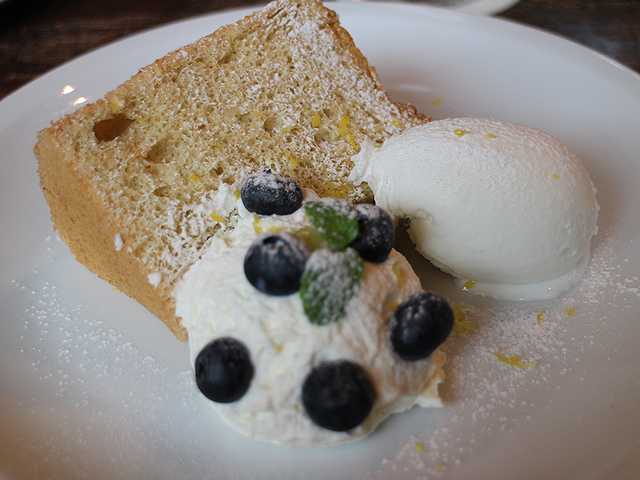こちらの「レモンとポピーシードのシフォンケーキ ヨーグルトジェラート(900円)」をオーダーしました。両方で1,500円です。少々高くついたカフェタイムでした。^^;