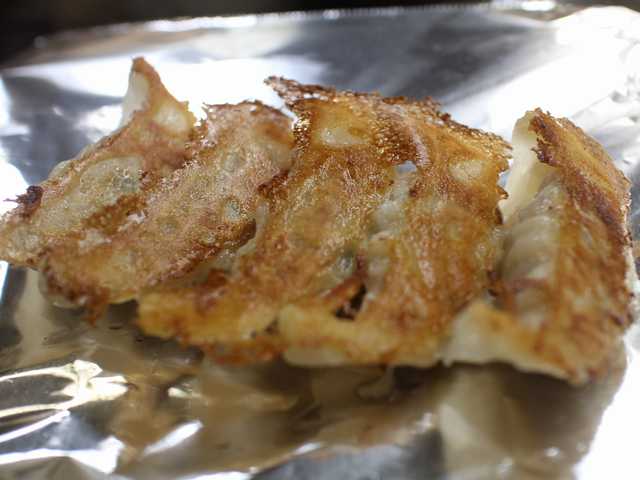 餃子は味噌だれでいただきます。もちもちの皮にジューシーな餡。生ビールに最高に合います。
