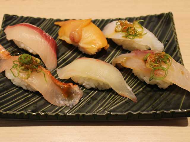 握りは小ぶりでしたが、半分はおろし醤油にネギが乗せられていて、醤油につけずにそのまま食べることが出来ました。