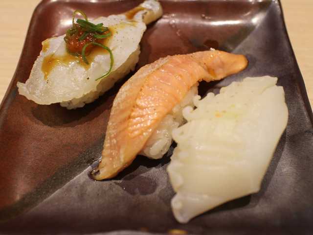 イカ、トロサーモン、もう一貫はなんだろう?^^;