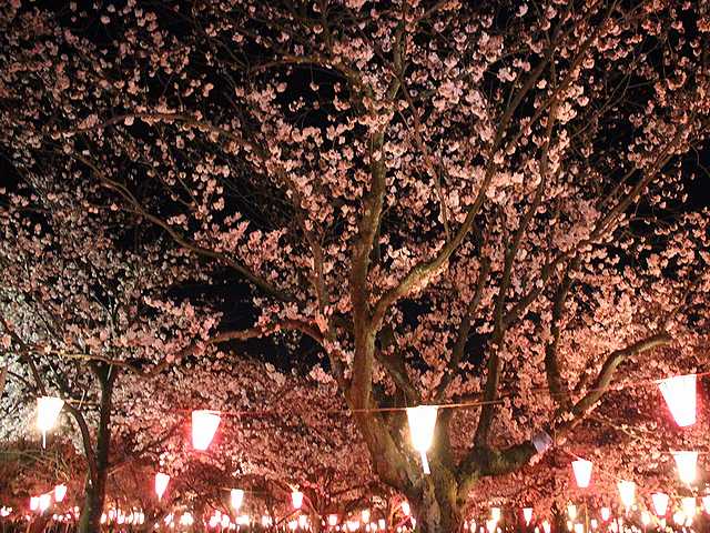 昨日20:30頃に行ったときのもので、桜見物の人はそれほど多くありませんでした。まぁ、まだ昨晩の段階では3~5分程度の開花状態だったので、今日の夜や明日あたりは多くの人出で賑わっているでしょうね?
