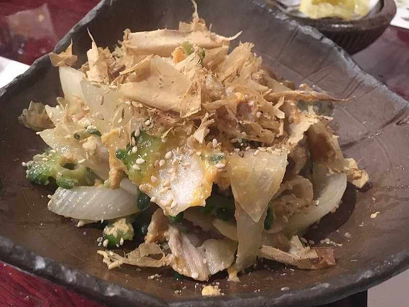 「ゴーヤチャンプル(680円)」も頼んでみました。卵でとじられていませんね。