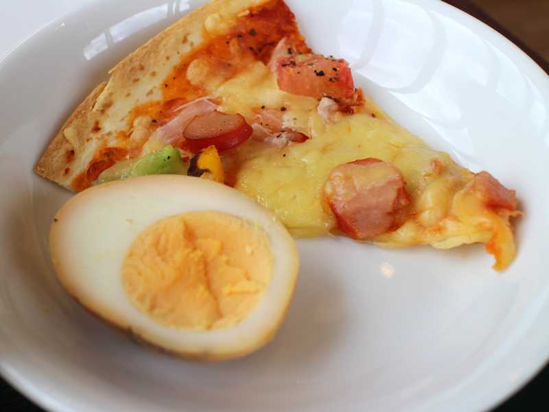 ピッツァと燻製玉子。