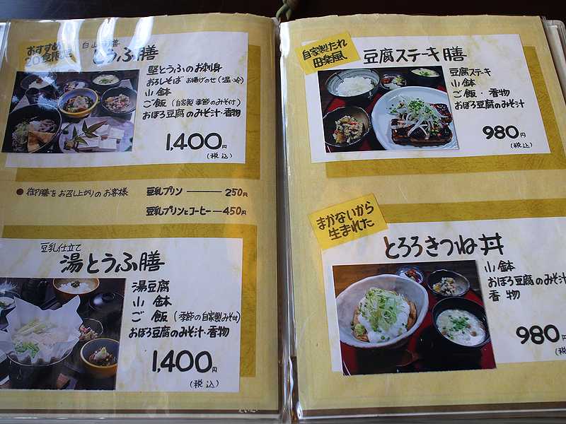 メニューには、豆腐だけだとバリエーション的に少なくなるので、そばやうどん、そして豆腐から作る油揚げを使った丼などもメニューにありました。