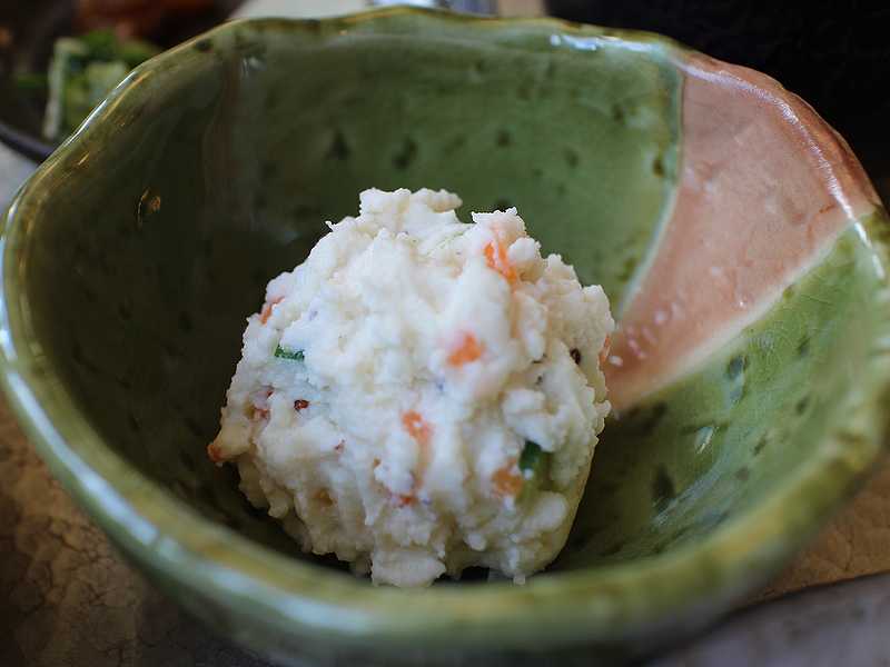 小鉢はおからサラダ。絹ごしで、おからには思えないほどの滑らかな舌触りで、味付けも上品で美味しかったです。