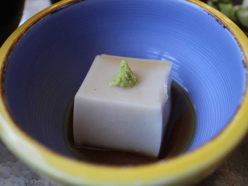 わさび醤油で食べます。一般的な堅豆腐より水分を多く含んでいるので、滑らかな舌触りでした。もちろん、大豆の旨みがすごくしました。