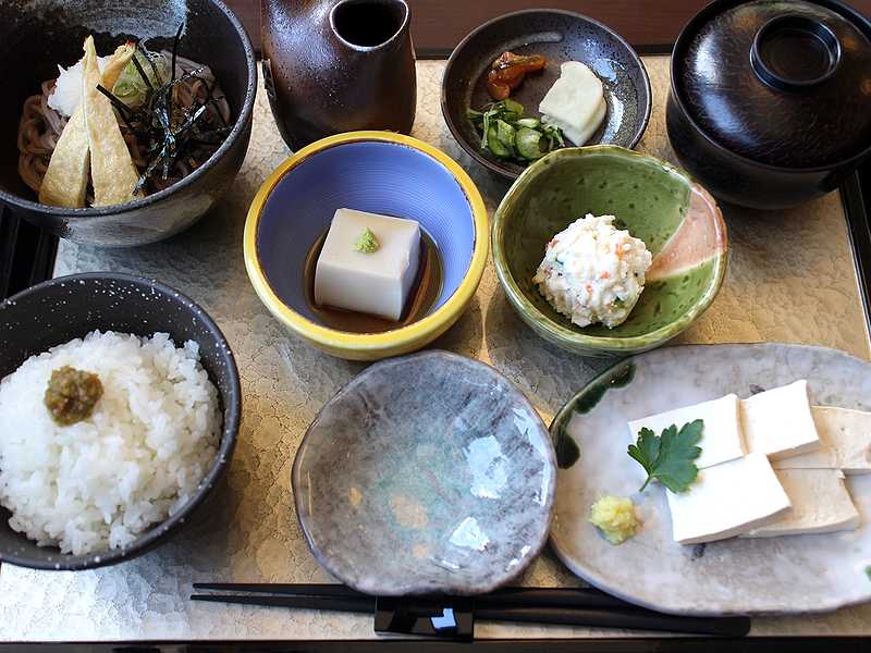 そんなメニューの中から私が頼んだのは、一通り、ウリの堅豆腐と豆腐を使った料理、そしてそばまで味わえる内容となっている「とうふ膳(1,400円)」。