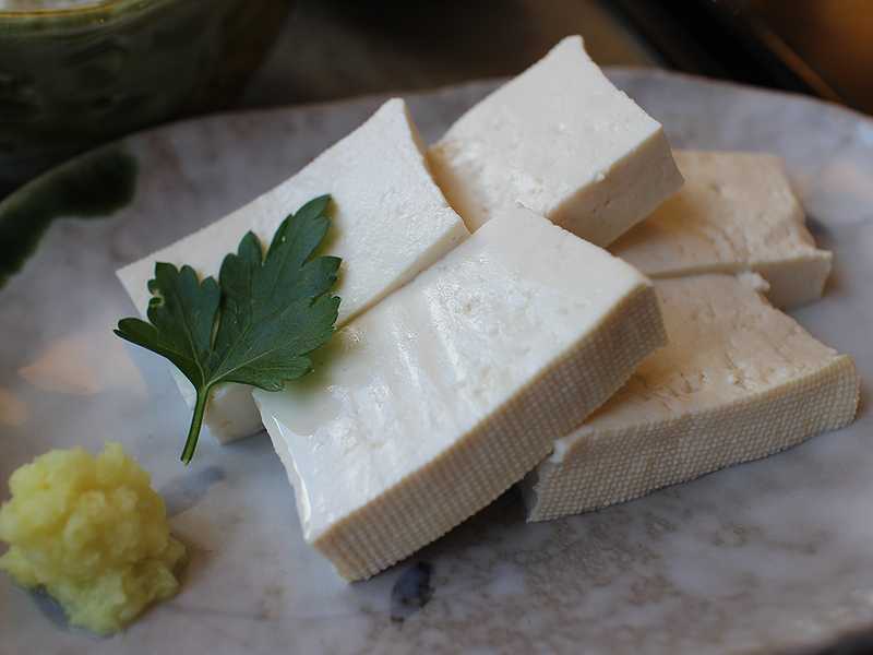 豆腐は富山県入善町の農家に契約栽培してもらっている大豆と珠洲の塩田の天然のにがりを、白山の伏流水を使い作っていますね。こちらのお店の堅豆腐は限界まで水分を含ませて作っているので、非常に瑞々しい堅豆腐でした。