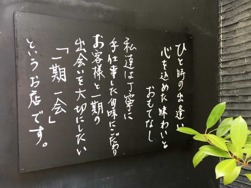 夏の暑い日の12時半ごろにお店に入ります。店名への思いがご覧の通り掲げられています。