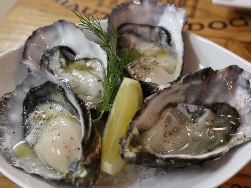 生牡蠣があったので、まずそれを。ニュージーランド産で1ピース税別490円~。4ピース頼みました。