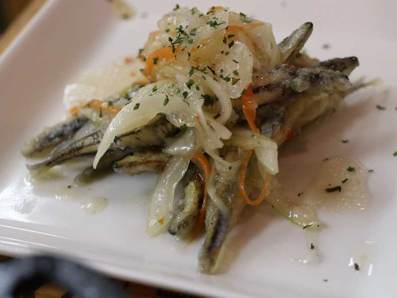 こちらは「きびなごのエスカベッシュ(税別499円)」。少しカレーの風味が付いた一品で白ワインにあいます。