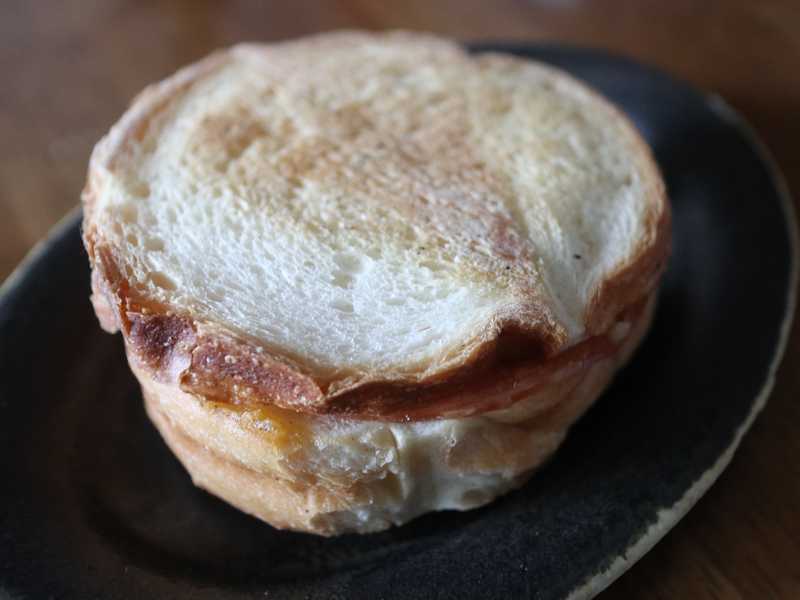 食パンを焼きあげて、中にハム・タマゴ・チーズを挟んであります。