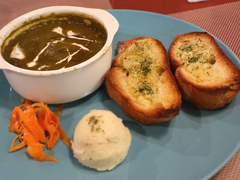 北インド地方のパラク(ほうれんそう)とマッシュルームのカレーということです。