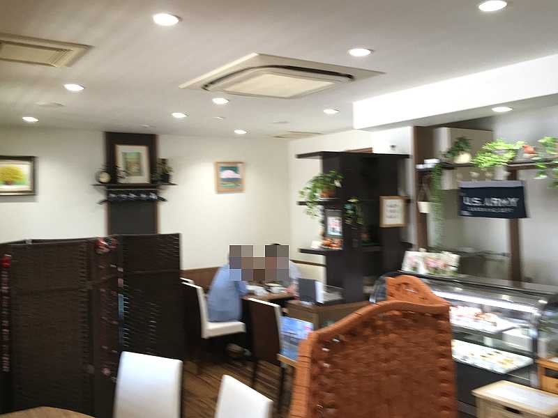 店内はテーブル席が12席ほど。ケーキのショーケースもありました。
