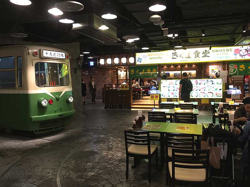 食堂街には、このようにむかし走っていたような市電のモニュメントがあったりします。