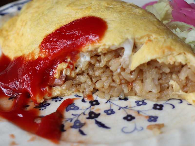 中のライスの味付けはケチャップではありません。焼き飯です。先ほども書きましたが鶏肉ではなくハムなところがGoodです。味付けは濃くありません。炒め方もパラッと仕上げるのではなくしっとり水分を残した作りです。