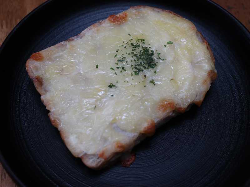「クロックムッシュ(税別230円)」は、もちもちの食パンの上にホワイトソース・ロースハム・チーズが乗せられ焼きあげてあります。