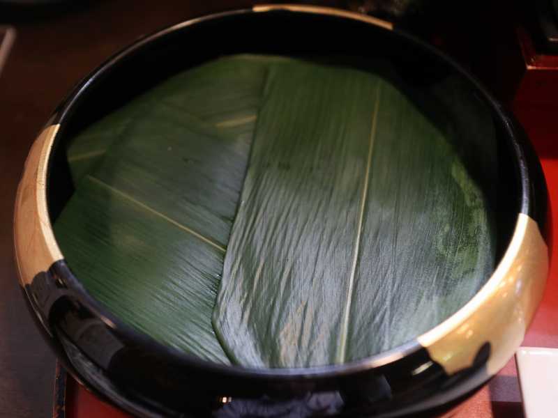 その蓋を開けると、笹の葉が。そして笹の葉を取るとこんな感じです。