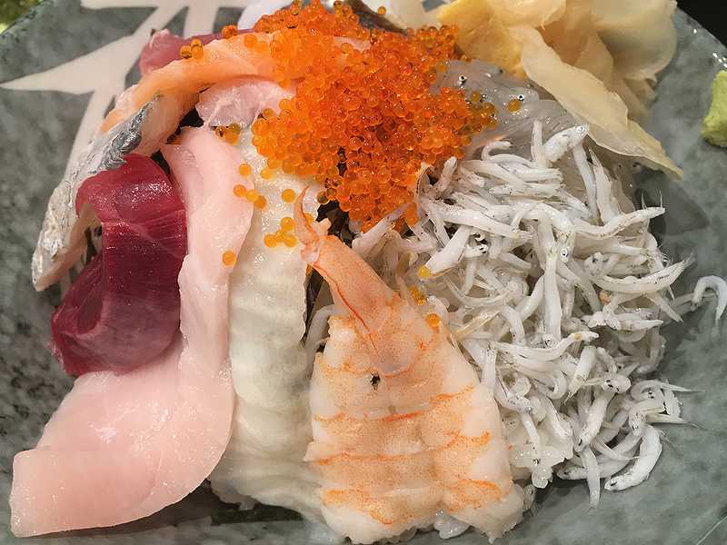 写真では少しわかりにくいかもしれませんが、釜揚げしらすの上、飛子の右のほうに少し埋もれた状態で生しらすがあるのですよ。