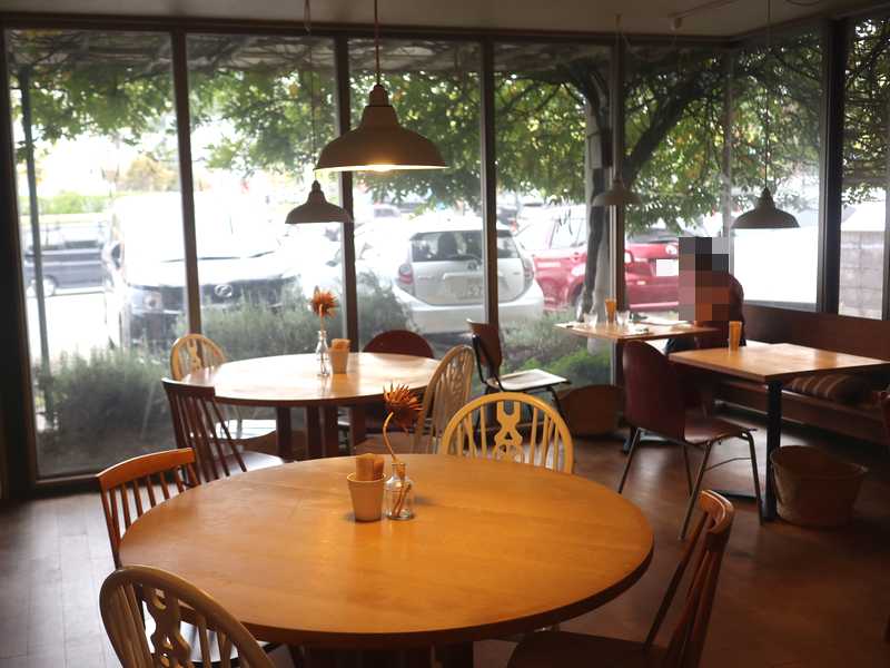 窓が大きいのですが、緑が垂れ下がってきていて、店内は少し暗めです。
