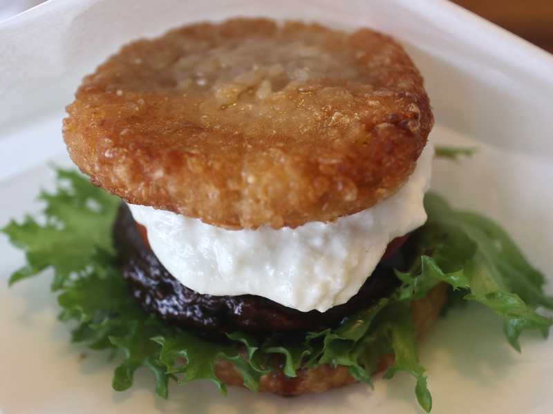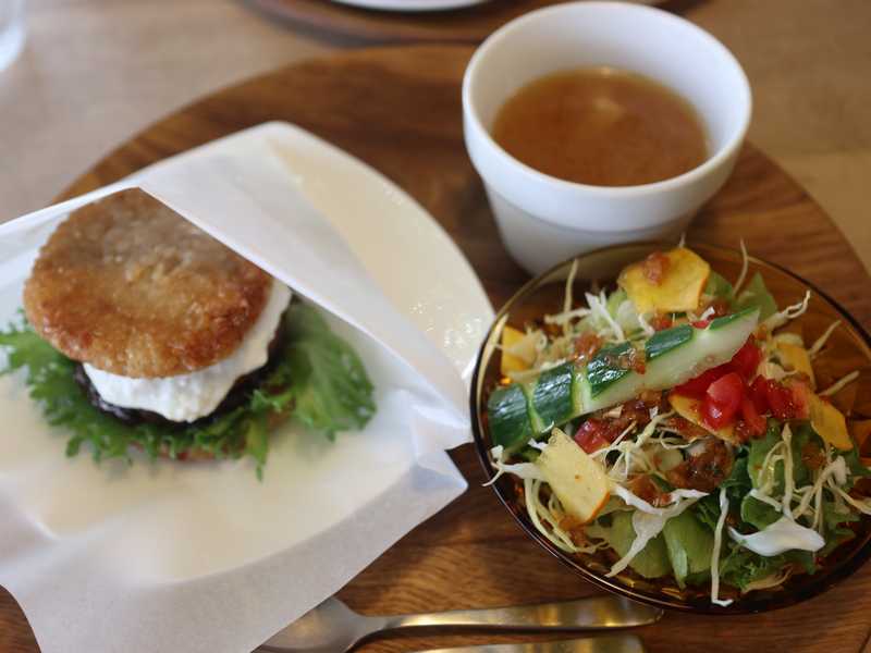 パテ?にはレンコンと玉ねぎが入っていてシャキッとした食感がありました。肉はソイ・ミート。それにスーパーフードとしても知られている「高きび」が使われているようです。