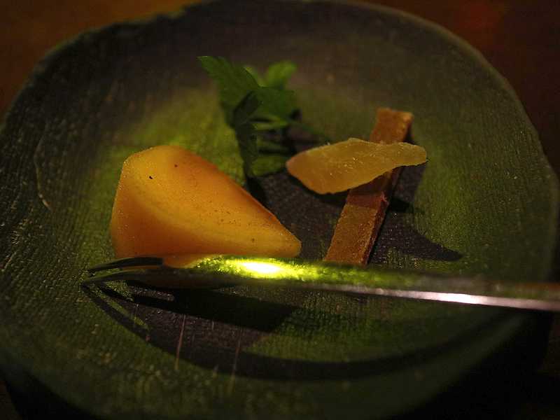 さて、話を元に戻します。お通しは柿とドライフルーツ。