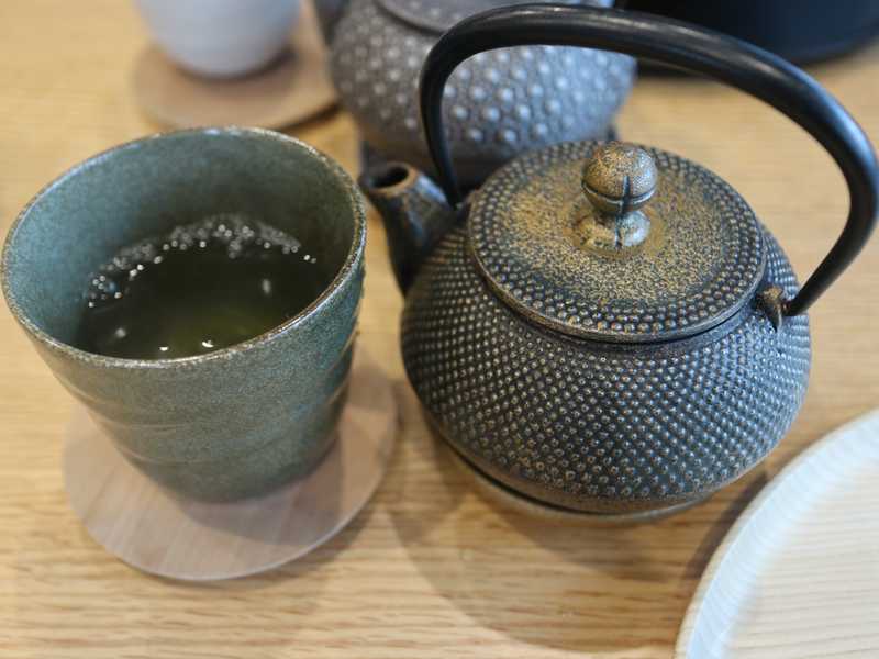 飲み物は緑茶。緑茶かほうじ茶が付いてきます。鉄器製の急須に入れられて出されました。2杯飲めました。