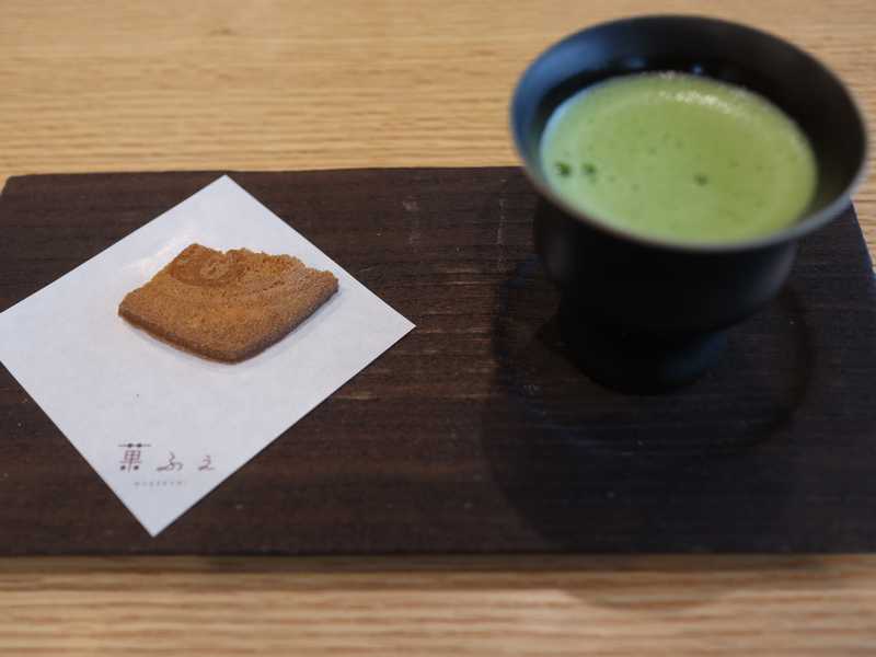 まず出されたのがこちらの「突出しセット」です。宇治抹茶と米粉クッキーのかけら?^^;