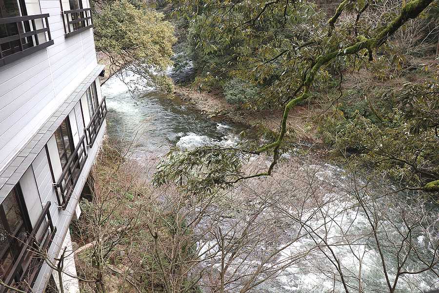 我々が通された部屋は鶴仙峡を眺めることが出来る鶴仙の間。眼下に緑と大聖寺川を眺めながら食べることが出来ます。