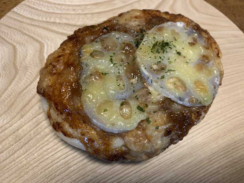 娘は「和風ピザ れんこんとみそマヨ(210円)」です。ピザにれんこんとみそマヨ。変わっていますね。