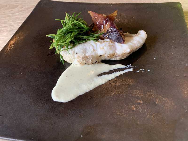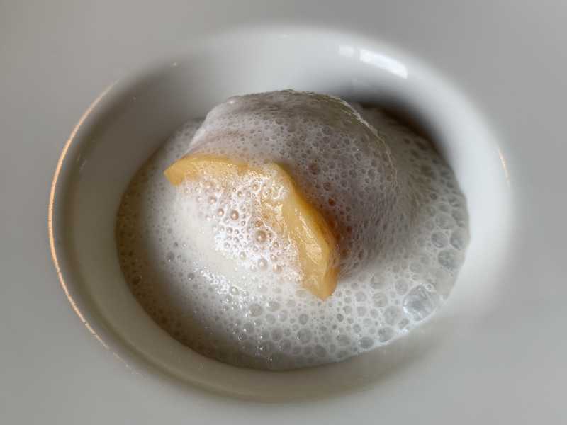 ソースは、とうもろこしと白ワイン、ニンジンの葉っぱを使ったソースでした。