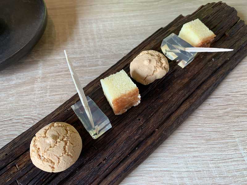 最後に出てきた小菓子は、アマレッティ、日本酒のゼリー、カステラのようなもの(なんていう名前か忘れました)の3種類。
