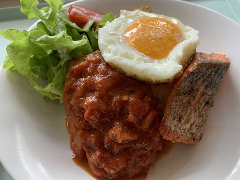 反対側から見るとロコモコ丼のようなビジュアルです。