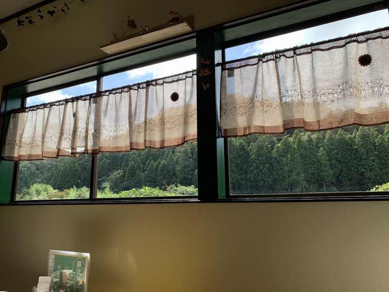 行った日も雨上がりで天気が回復に向かうとき。店名のような「陽だまり」になってきました。窓の外には、間近に山が見えて、雨上がりだったため緑と空の青さがきれいでした。