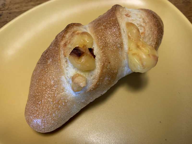 妻は「ベーコンチーズ(130円)」です。ちょっとハード系のパンです。