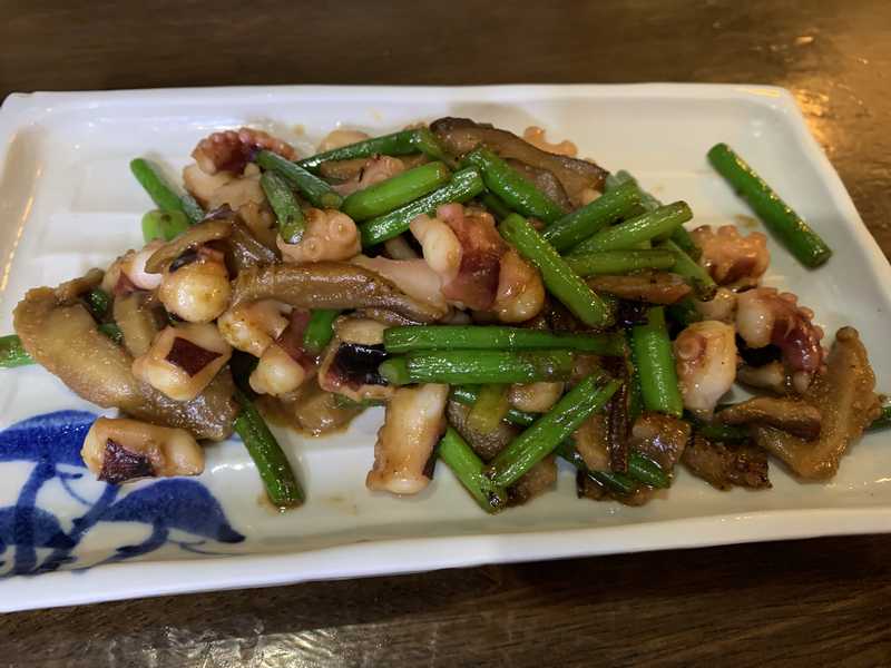 これは「島だこニンニク味噌炒め(1,000円)」です。ニンニクがとても効いています。そして酒がすすむ濃い味でした。