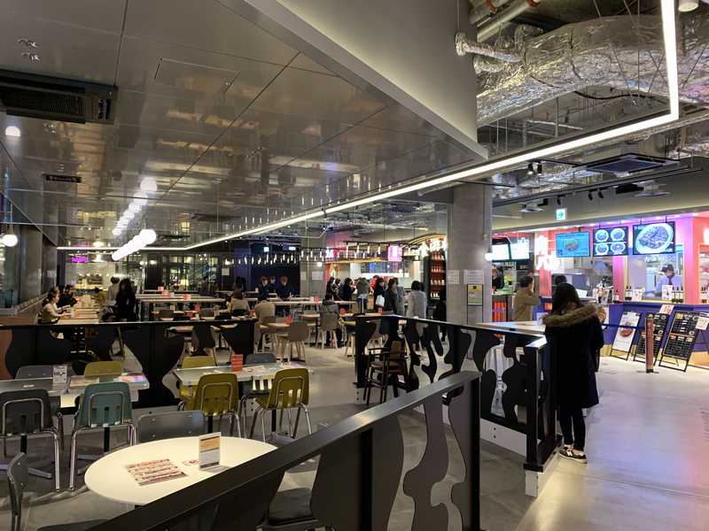 店内にも食べるスペースはあるのですが、「HONEBUTOムーチョ」の席は、バーなどにある背の高いイスで食べにくそうだったため、フードコート内共通の飲食コーナーで食べることにしました。