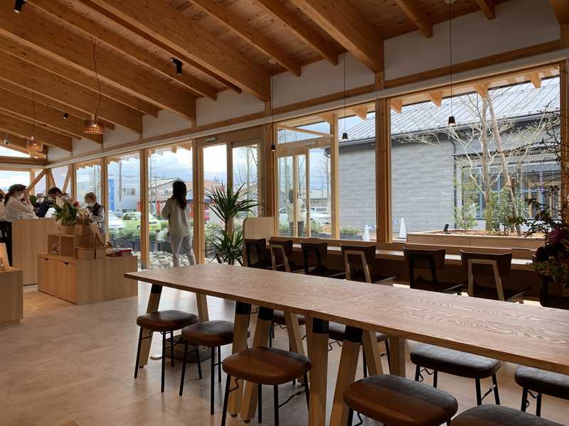 店内は木材を多用していて、大きなガラス張りのオープンな感じ。温かみのあるデザインですね。