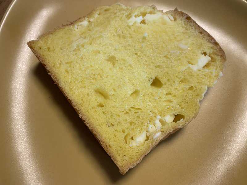 こちらが買い求めた「爽(そう)税込750円」です。黄色がきれいな食パン。半斤です。