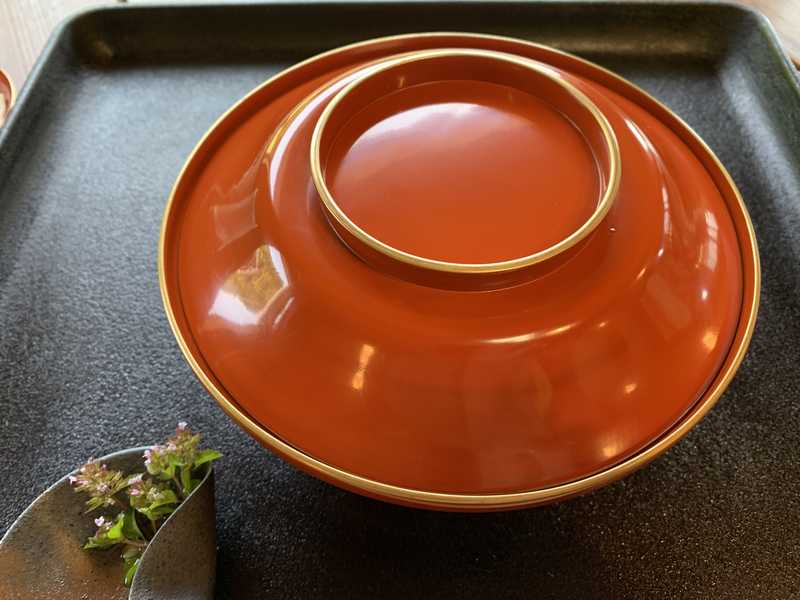 最初に出されたのは新玉ねぎを使って梅の風味で味付けされた先付のようなもの。