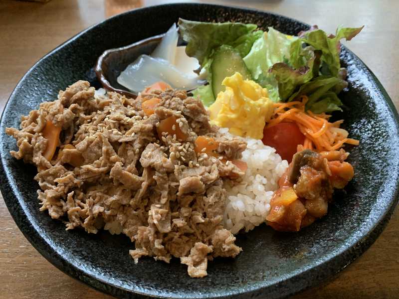 この日の「日替わりのおかずまたは丼」は「しぐれ丼」。ソイミートのしぐれ煮が乗せられています。
