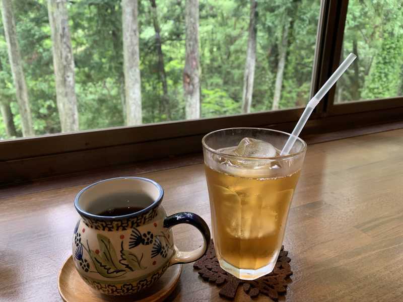 食後のドリンクは私は加賀棒茶のアイス。妻はコーヒー。