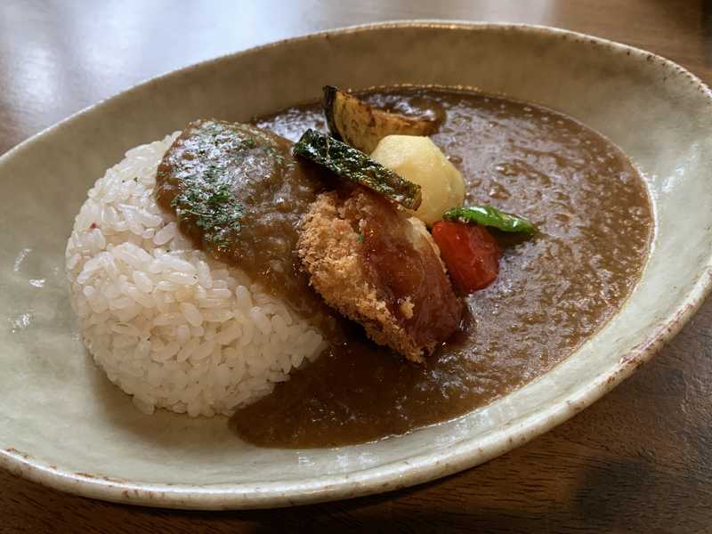 カレーは「コロコロ野菜の素揚げカレー」で大豆のソイカツも付いていました。そして素揚げされた野菜がたっぷり盛られています。