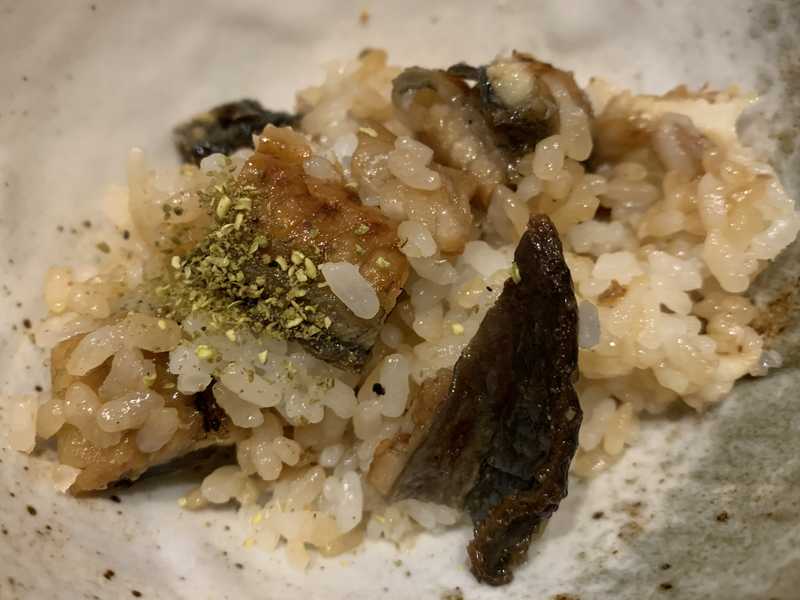 ひつまぶしを食べる時は、まず最初にほどよくかき混ぜて、お椀に盛って山椒を少しかけそのまま食べます。