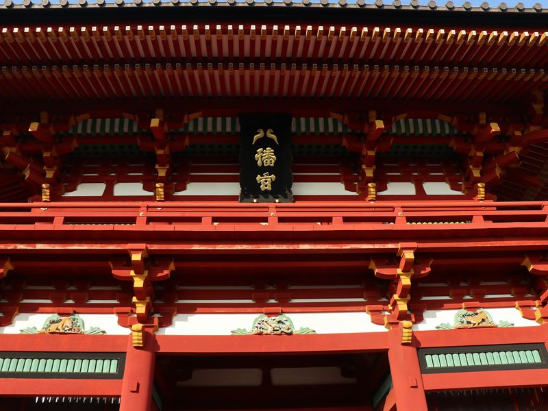 ちなみに、「鶴岡八幡宮」のシンボルは「鶴」ではなく「鳩」。本宮に掲げられた「八幡宮」の八の文字にも鳩が描かれています。