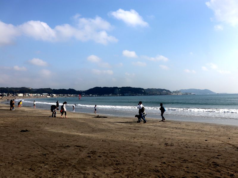 そこから見えた湘南の海を見たくて、歩いて由比ヶ浜の海岸まで。