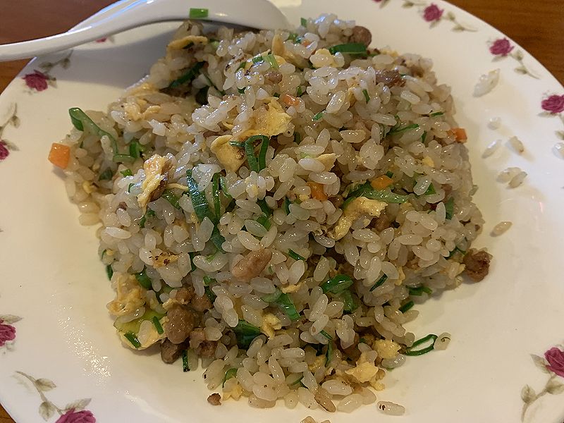 台湾炒飯を頼みました。台湾炒飯は台湾ラーメンのH炒飯版と思ってください。ピリ辛に炒めた挽肉が入っているわけです。